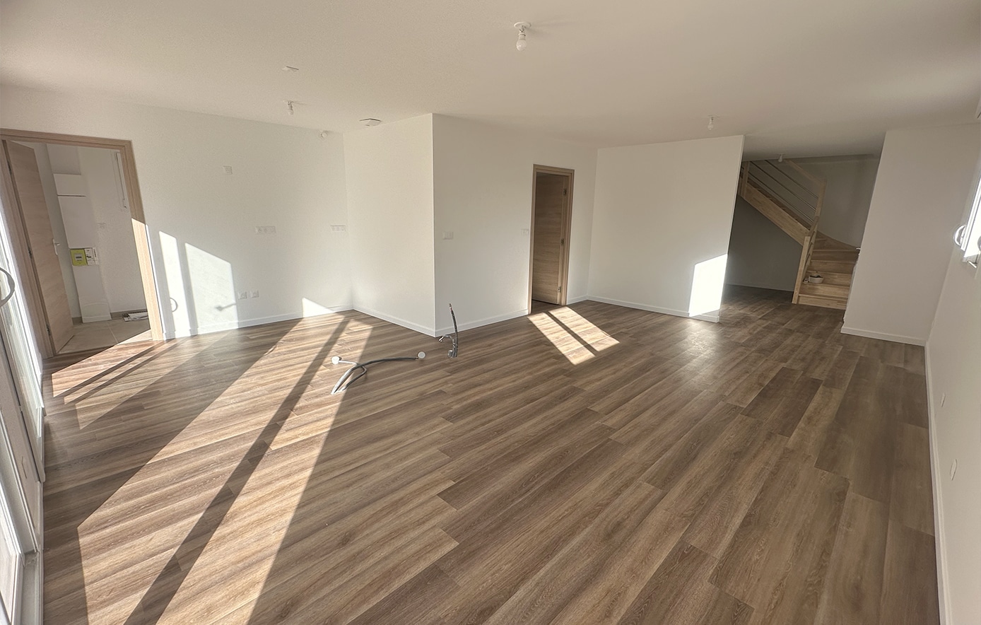 Le modèle présenté est une Perrière de plain-pied développant 89 m² habitables dans sa version de base, portée ici à environ 140 m² grâce aux combles aménagés par les propriétaires. Conforme aux normes PMR, cette maison est idéale pour une première acquisition ou un investissement. Le modèle de base comprend 2 chambres, dont 1 suite parentale avec dressing et salle de bain privative, un grand séjour et un garage intégré, complétés à l’étage par des chambres supplémentaires et une seconde salle de bains.