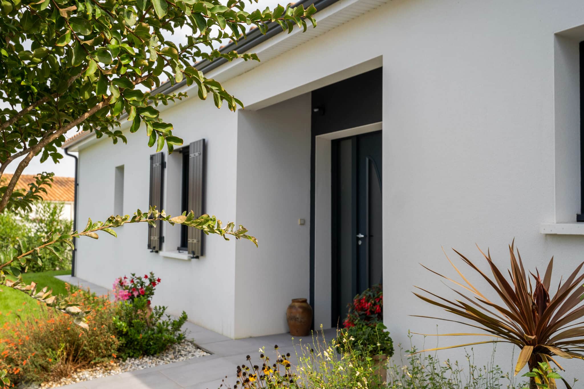 Toutes nos portes d’entrée ont un cochonnet 0 ! Kesako ? Non, on ne parle pas de pétanque 😉 Le cochonnet est la partie visible du cadre dormant d’une menuiserie depuis l’extérieur, plus spécifiquement les montants et la traverse haute du dormant. Un cochonnet 0 signifie donc que l’enduit sera parfaitement au niveau du dormant de la porte d’entrée.