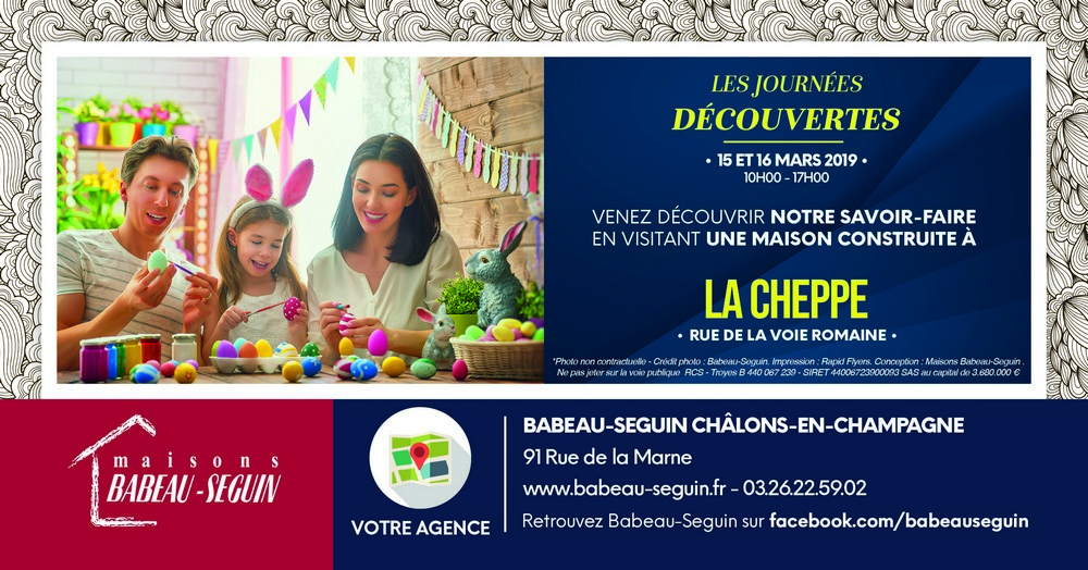 Cet article vient du site Maisons Babeau Seguin. Vous pouvez en lire l’original au lien suivant : Porte ouverte à Chalons-en-Champagne du 15 au 17 Mars 2019